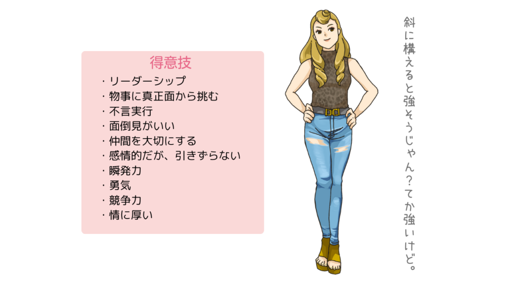 - 統率力と実行力: リーダーシップがあり、有言実行・不言実行で周りを引っ張ります。