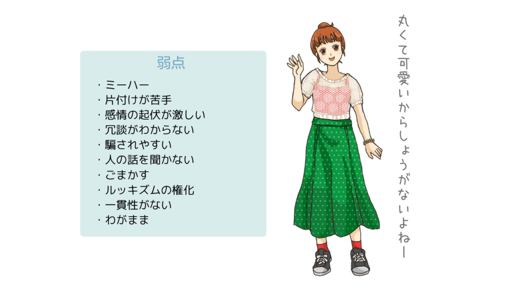 - 行動的でミーハー: 辛いことは避け、楽しいことや流行に敏感なミーハーな一面があり、とにかく行動的です。