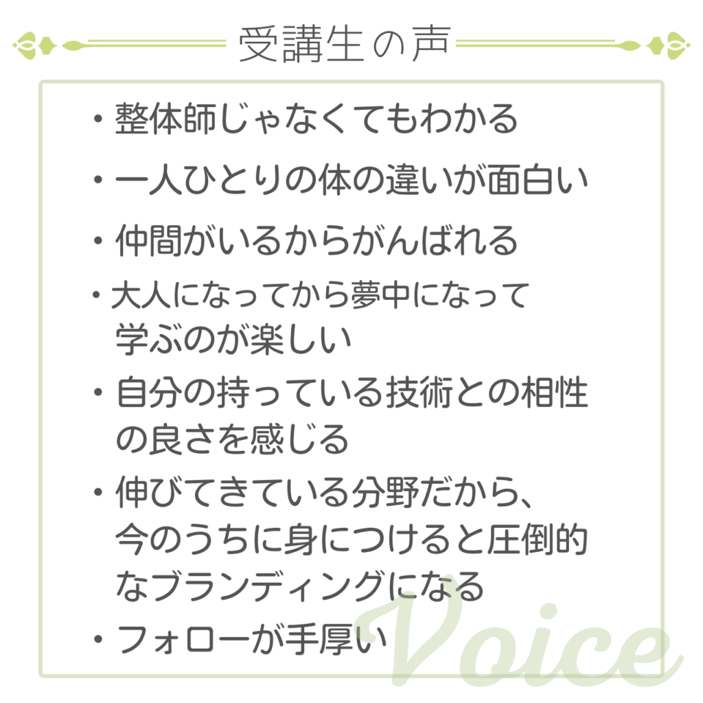 本講座は、複数の整体の技術を使い客観的に相手の体癖を診断し、その人の「潜在的なニーズ」と「行動原理」を明らかにする「診断のエキスパート」を養成します。