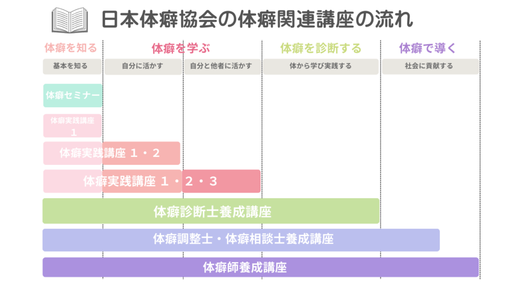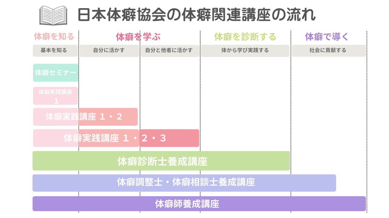 日本体癖協会のセミナーや講座にはいくつか種類が分かれています。