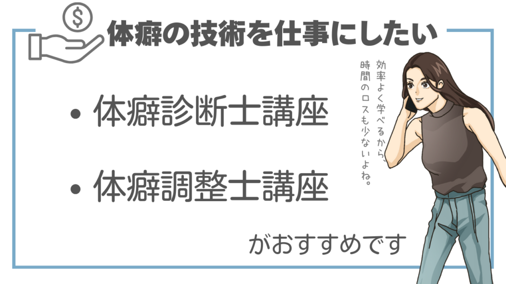 ・調整士講座は、お体からお相手の体癖の不調にアプローチし、お体を整える技術を身につける講座です。